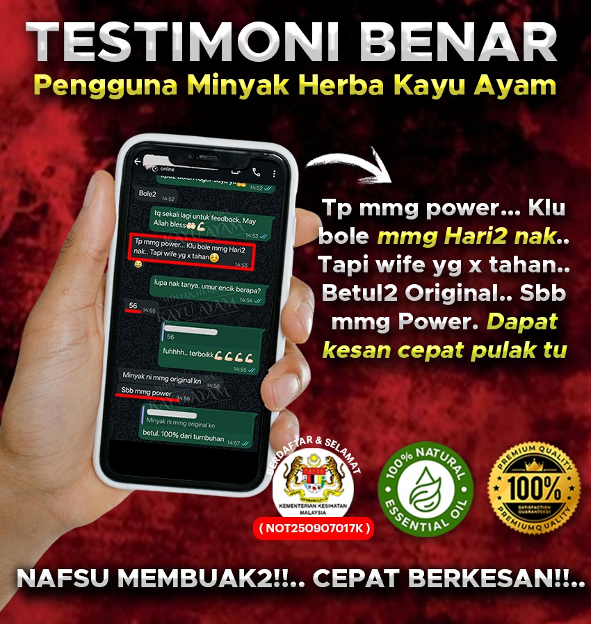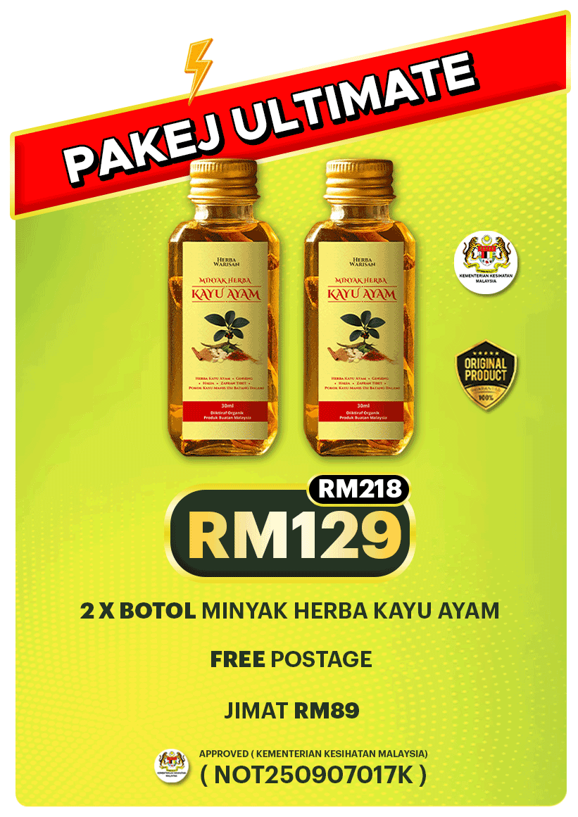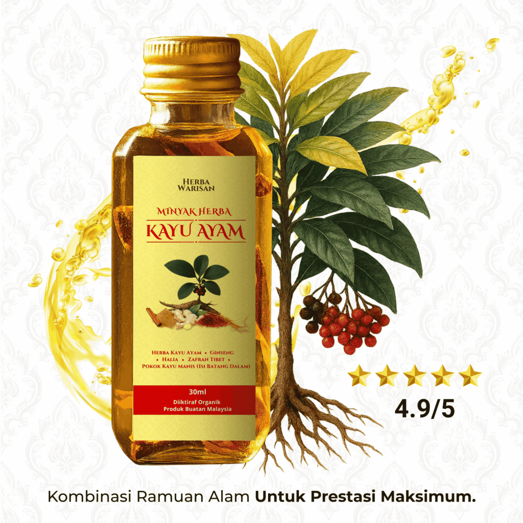 Minyak Herba Kayu Ayam Terbukti Bantu Kekal Keras Lebih Lama Secara Semula Jadi, Prestasi Lebih Mantap dan Kepuasan Rumah Tangga Lebih Harmoni.