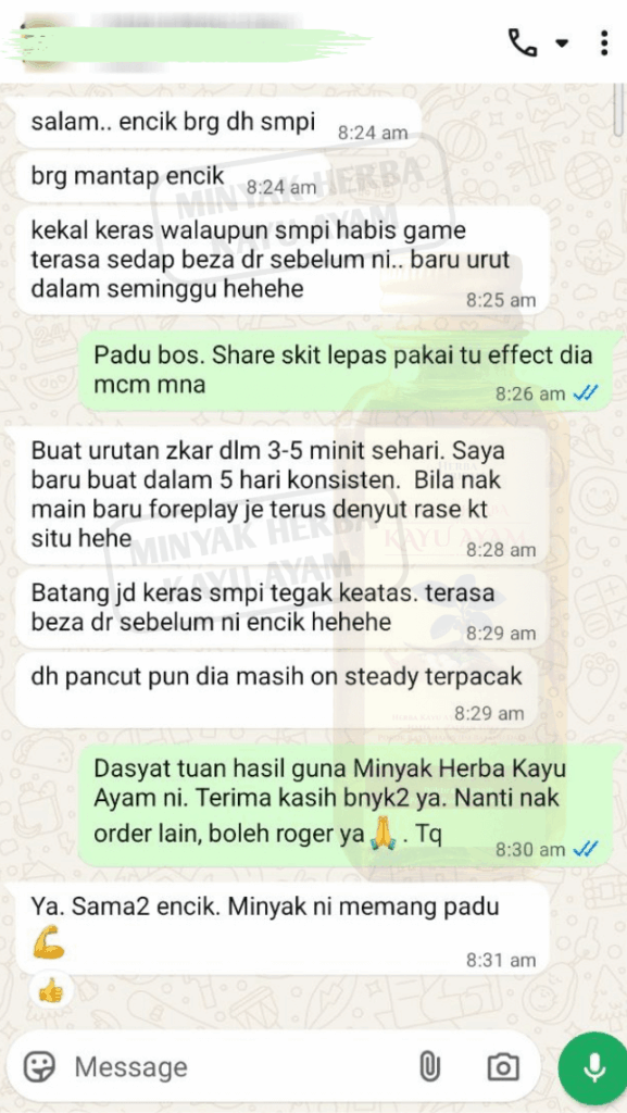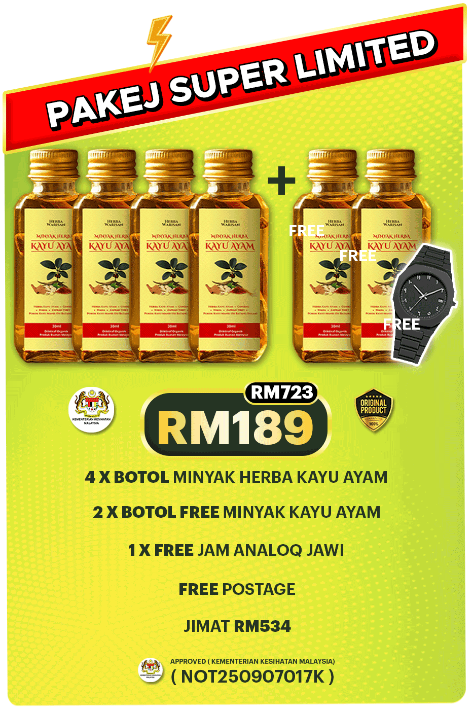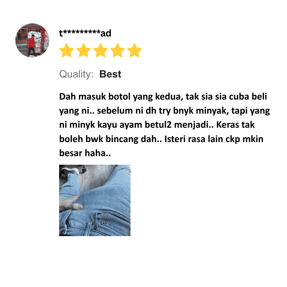 👉 Minyak tradisional lelaki diformulasikan dengan 7 herba warisan Melayu & Cina, khusus membantu masalah kelakian seperti zakar lembik, mati pucuk, cepat pancut dan kurang tenaga.