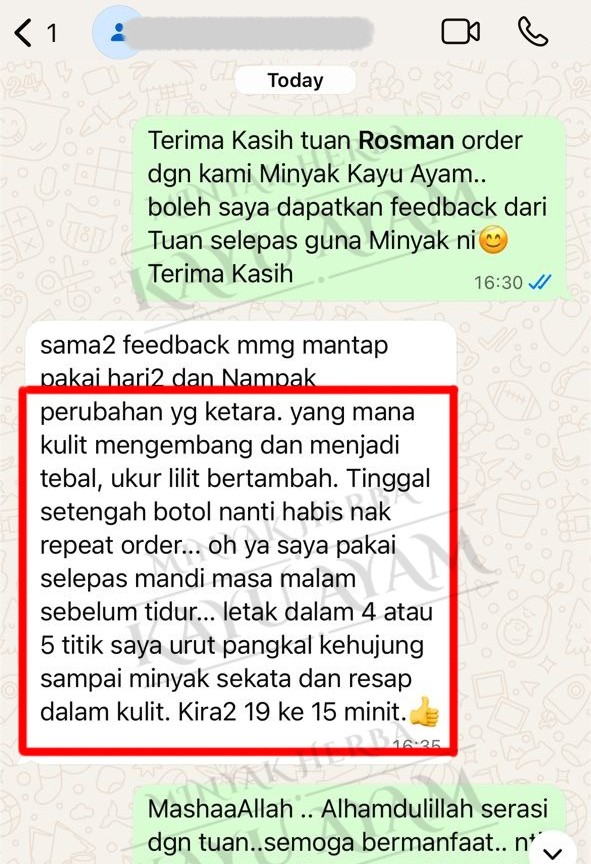 MINYAK HERBA KAYU AYAM TELAH BERJAYA BANTU LEBIH